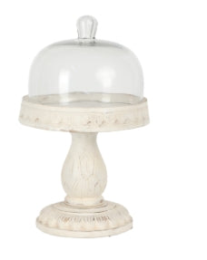 13" Big Wooden Whitewash Cake Stand with Glass Dome