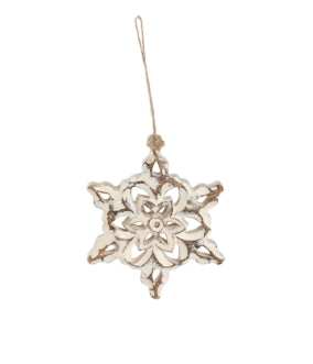 White Washed Wooden Snowflake Ornament