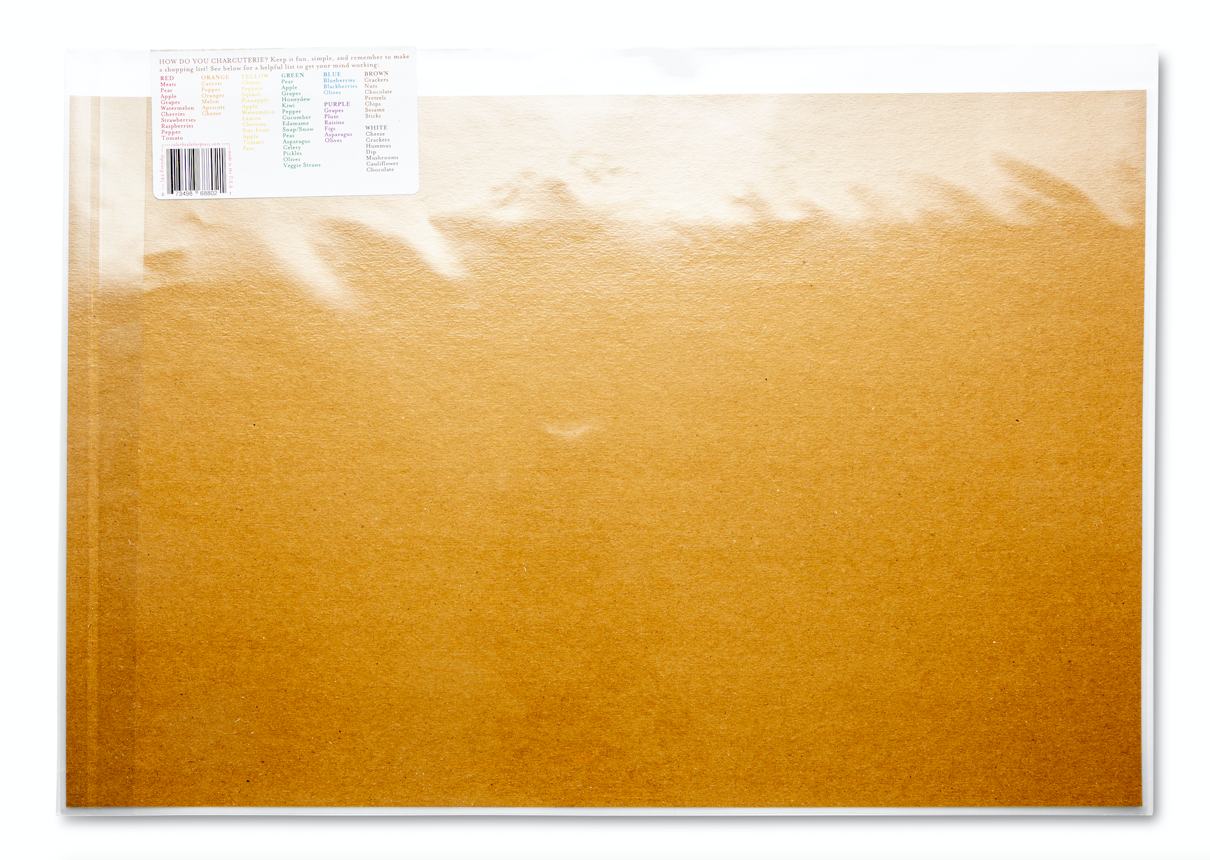 Whether you're a seasoned entertainer or a novice host, our Charcuterie Cheat Sheets makes it easy to elevate your charcuterie game and create a lasting impression at your next special occasion or party. Simply follow the guide, mix and match your favorite cheeses, meats, fruits, nuts, and accompaniments, and watch as your charcuterie masterpiece comes to life! Simply wipe with a damp cloth and your Cheat Sheet is ready to use again and again.