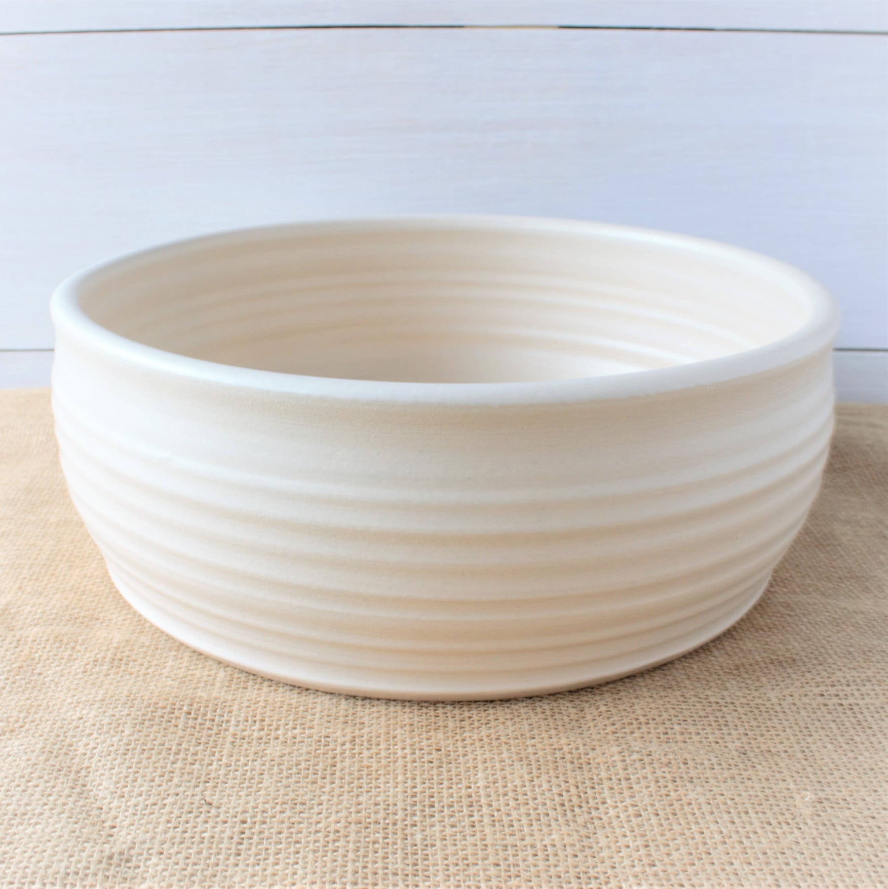 Our Farmhouse Ridges Collection is inspired by the vast ridges left behind during the glacial period in Wisconsin. Each piece in this collection has ridges that are formed from the potter's hands as the piece is thrown on the potter's wheel.