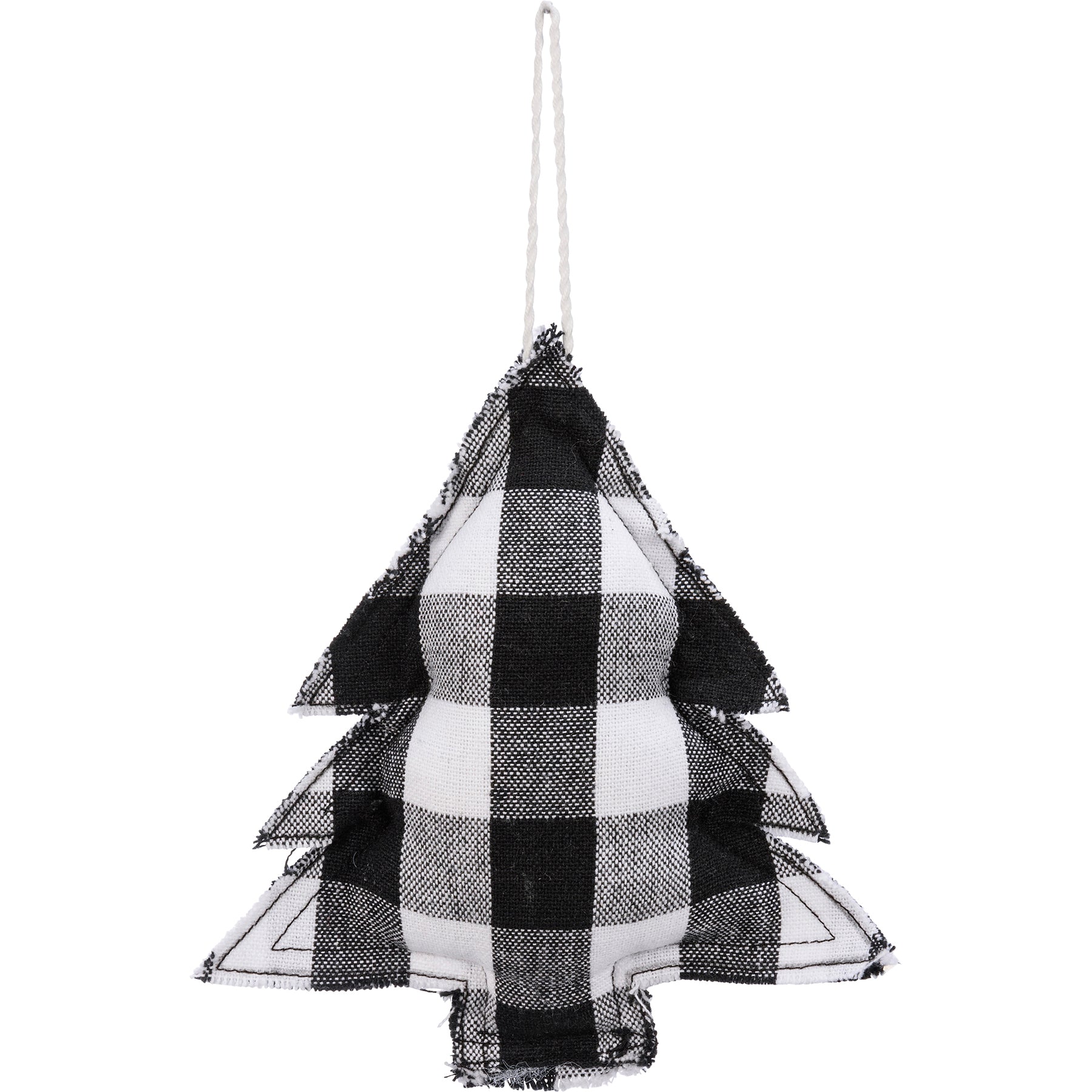 • A double-sided cotton tree ornament featuring an all-over black and white buffalo check pattern. Includes a loop for easy hanging. Polyester filled. Pairs well with other holiday plaid items.